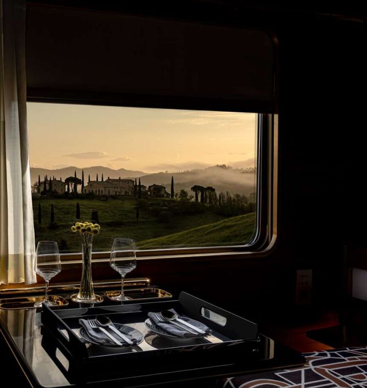 UMA VIAGEM INESQUECÍVEL EM TREM PELA ITÁLIA, Descubra a emoção de viajar a bordo do La DolceVita Orient Express, o novo trem icônico que atravessa a Itália em toda a sua beleza. Uma experiência exclusiva que combina a elegância do design italiano dos anos 1960 com o conforto refinado e a atmosfera glamourosa da era de ouro das viagens ferroviárias. Roma, Montalcino, Roma